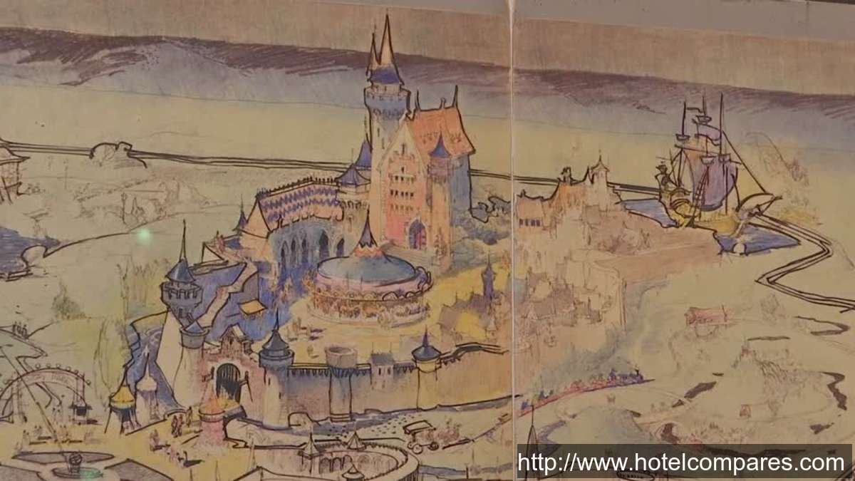 Side note: that castle looks a whole bunch like Hogwarts, or more accurately Hogwarts looks a whole lot like the original idea for Sleeping Beauty Castle.